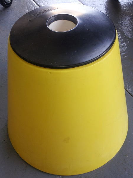 This Sign Holder or Sign Post Protector is very light for shipping but can be filled with sand or stone to secure your parking lot sign or to protect it making it very sturdy once situated. The Sign Base is made of yellow high visibility polyethelene plastic and comes in yellow or blue. This Sign Post Protector helps protect sign posts from cars damage the parking lot signage. You or your maintenance person can easily install this one without help. It can be used as to protect and existing sign post installed in the pavement or to a new and freestanding sign holder. Comes with a black or white top. Please specify top color preference. If you do not specify then the black top will accompany the yellow base and the white top will accompany the blue base.